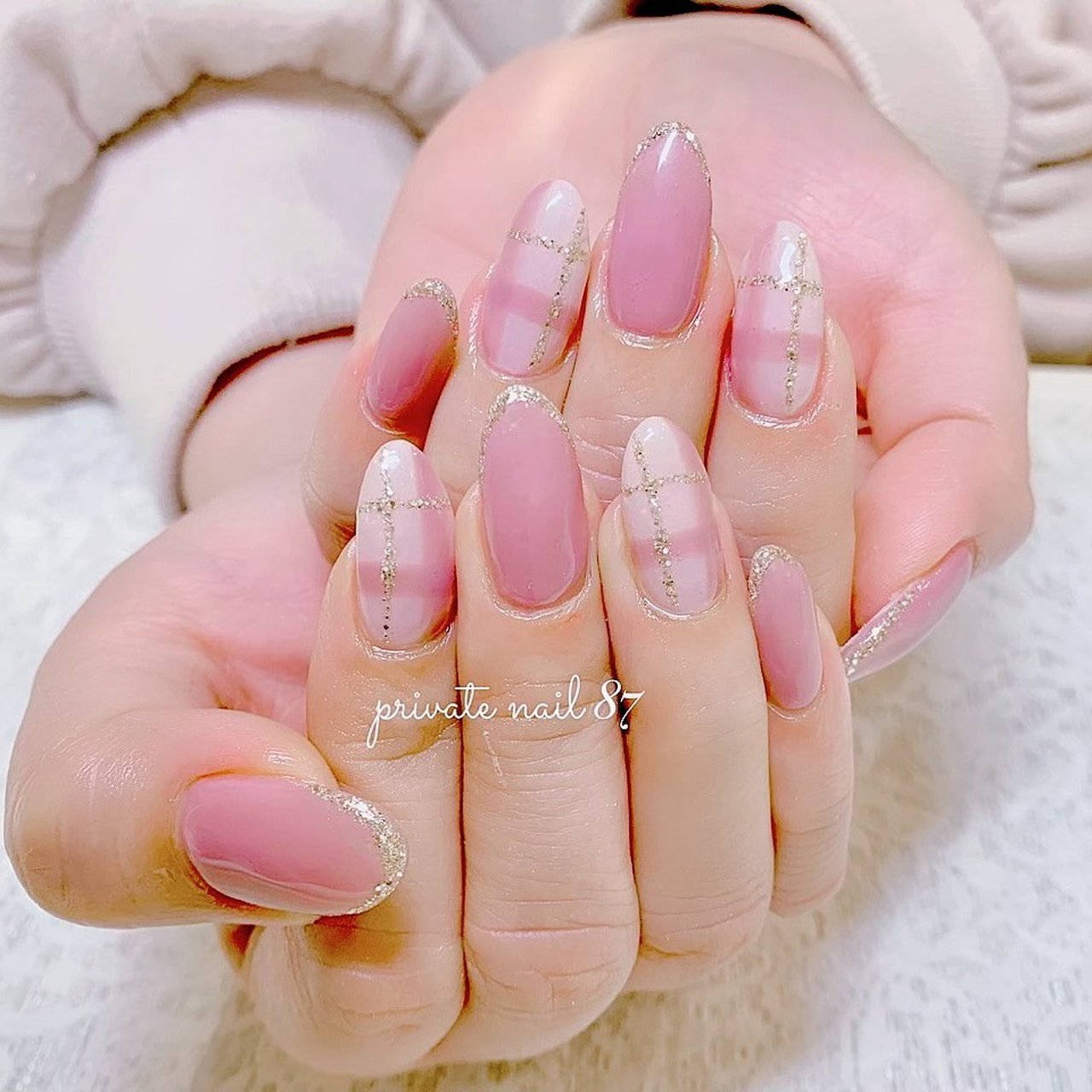 バレンタイン ハンド チェック ピンク ジェルネイル あみのネイルデザイン No ネイルブック